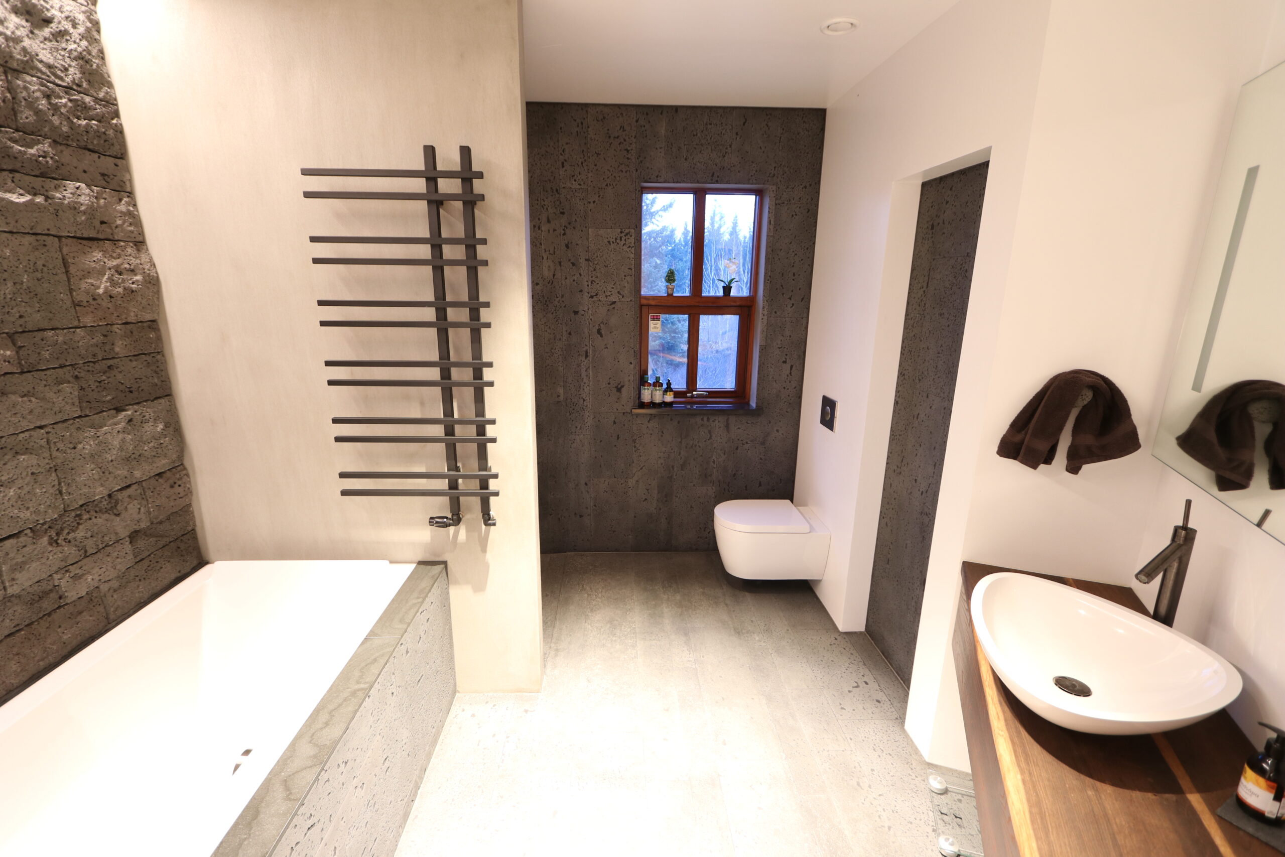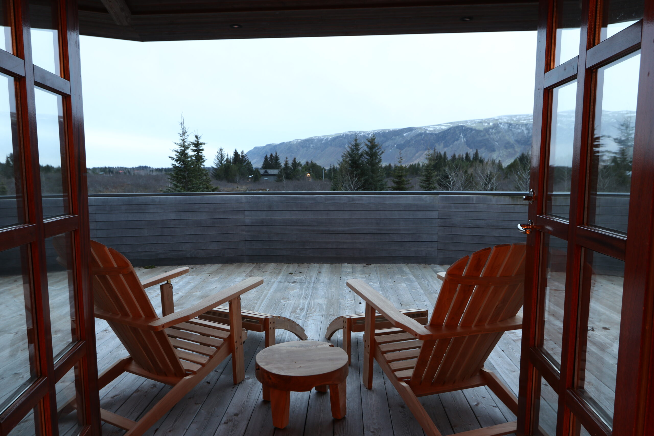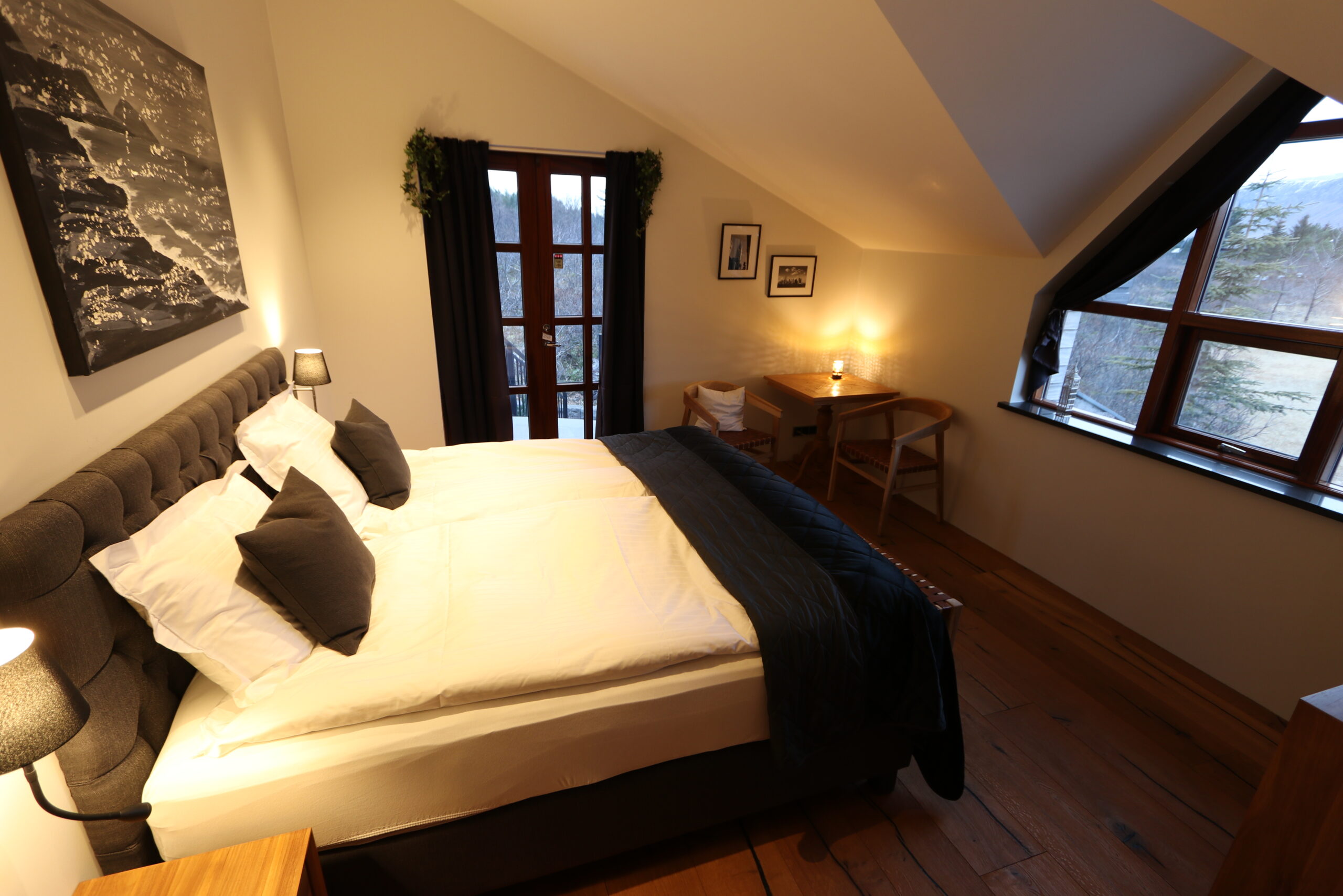 The Thingvellir Master Suite is a grand 42 sqm space with a 20 sqm balcony offering breathtaking views of the Ingólfur mountain. Enjoy a California King bed and a luxurious ensuite bathroom with a walk-in shower and a soaking tub, designed to enhance relaxation