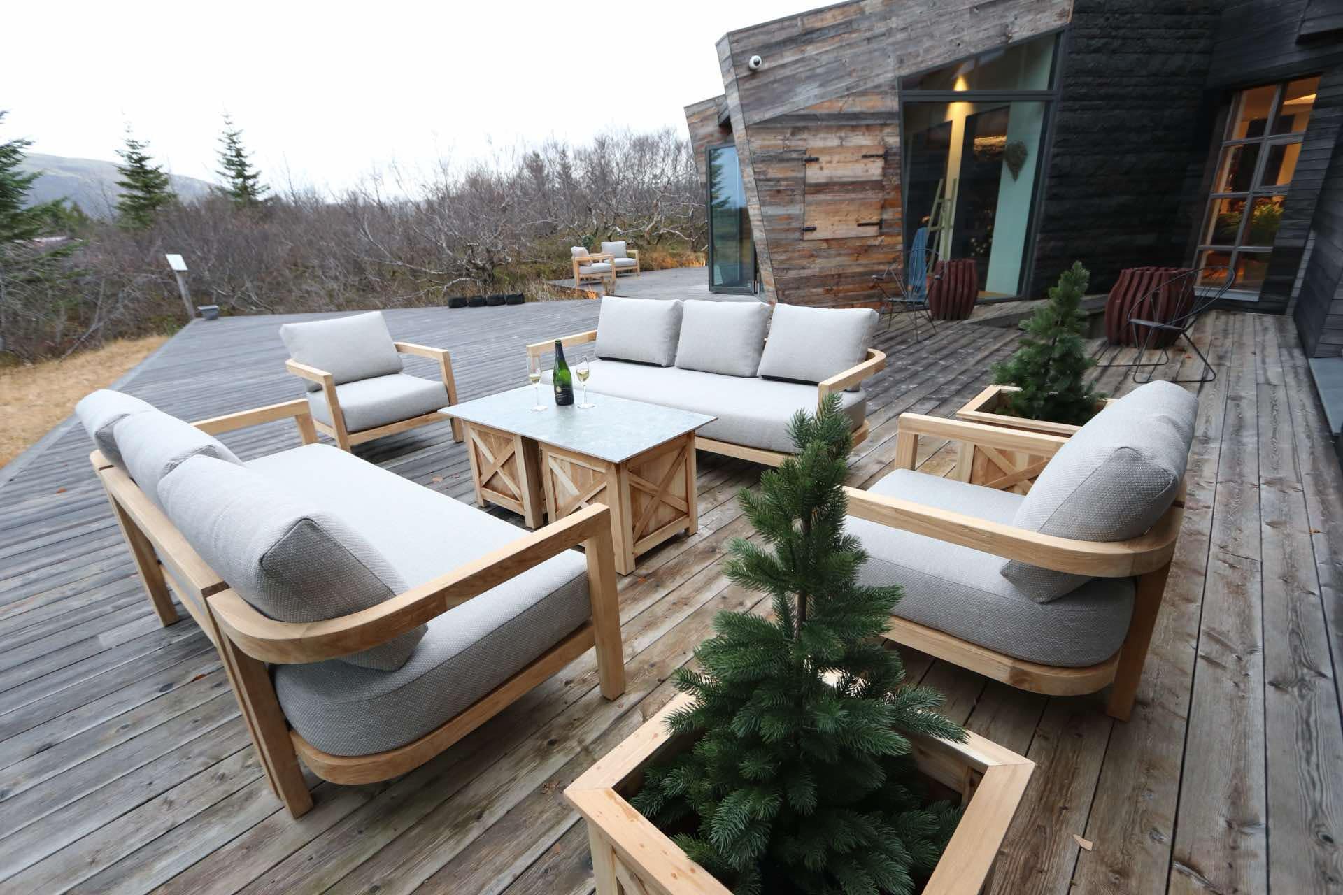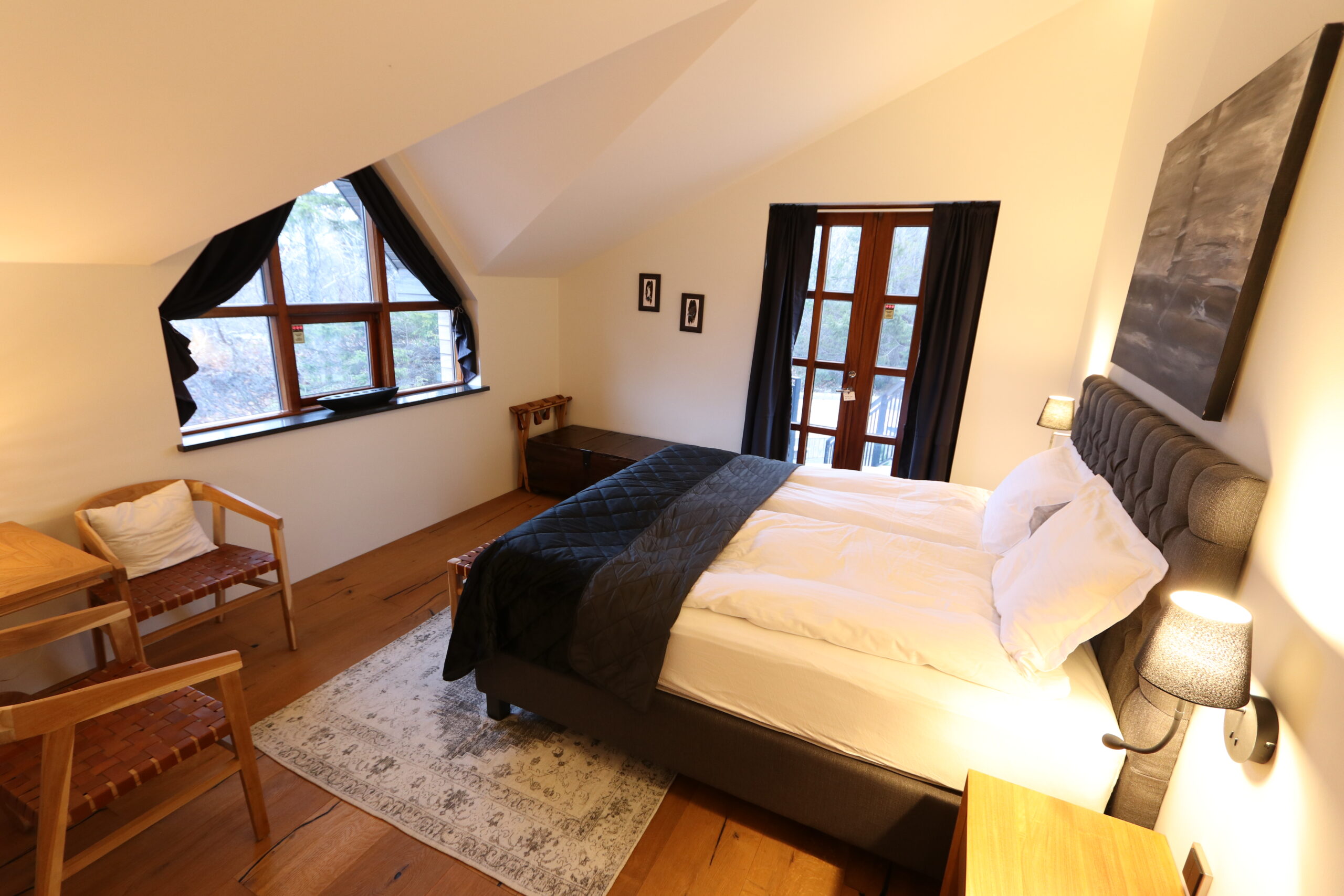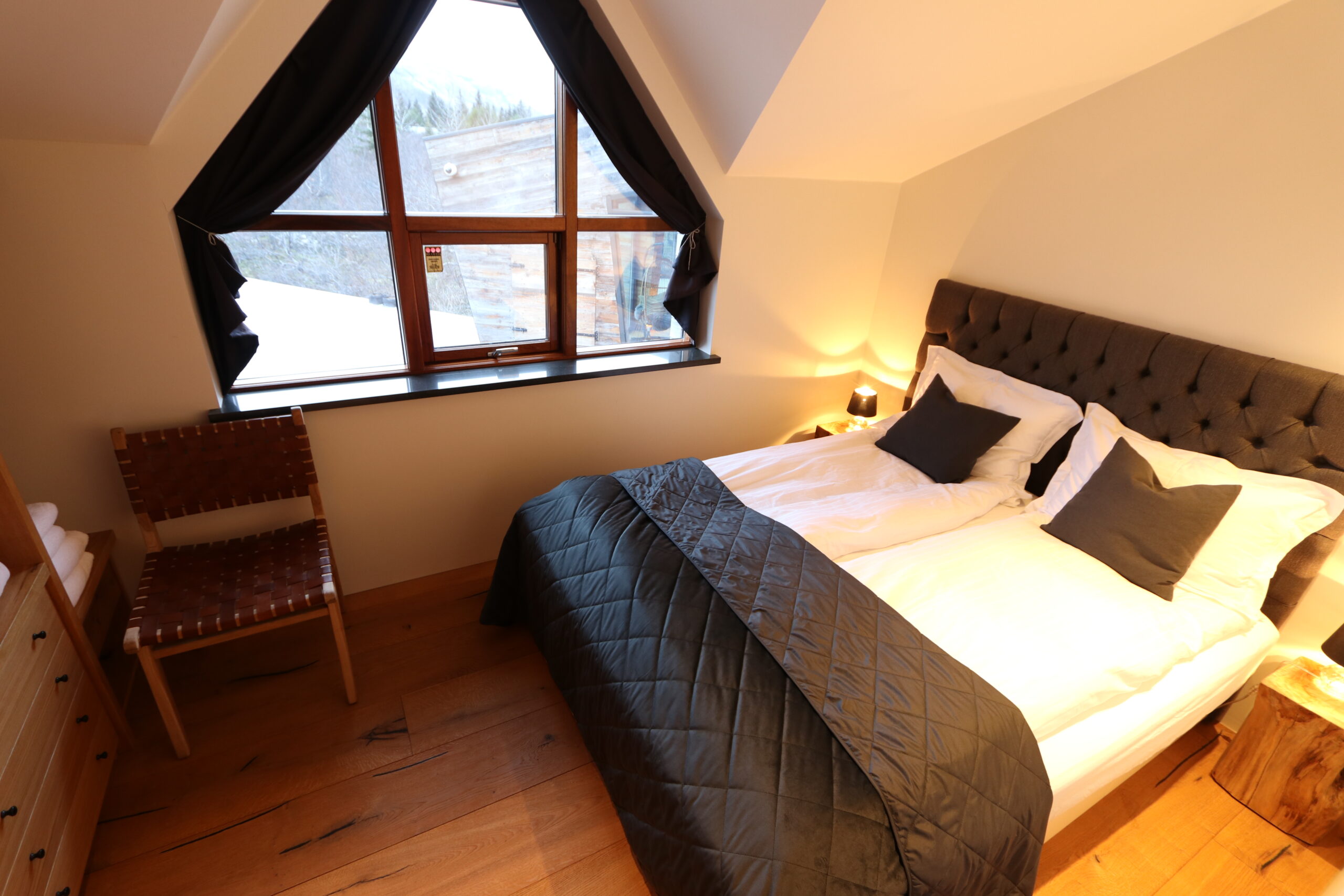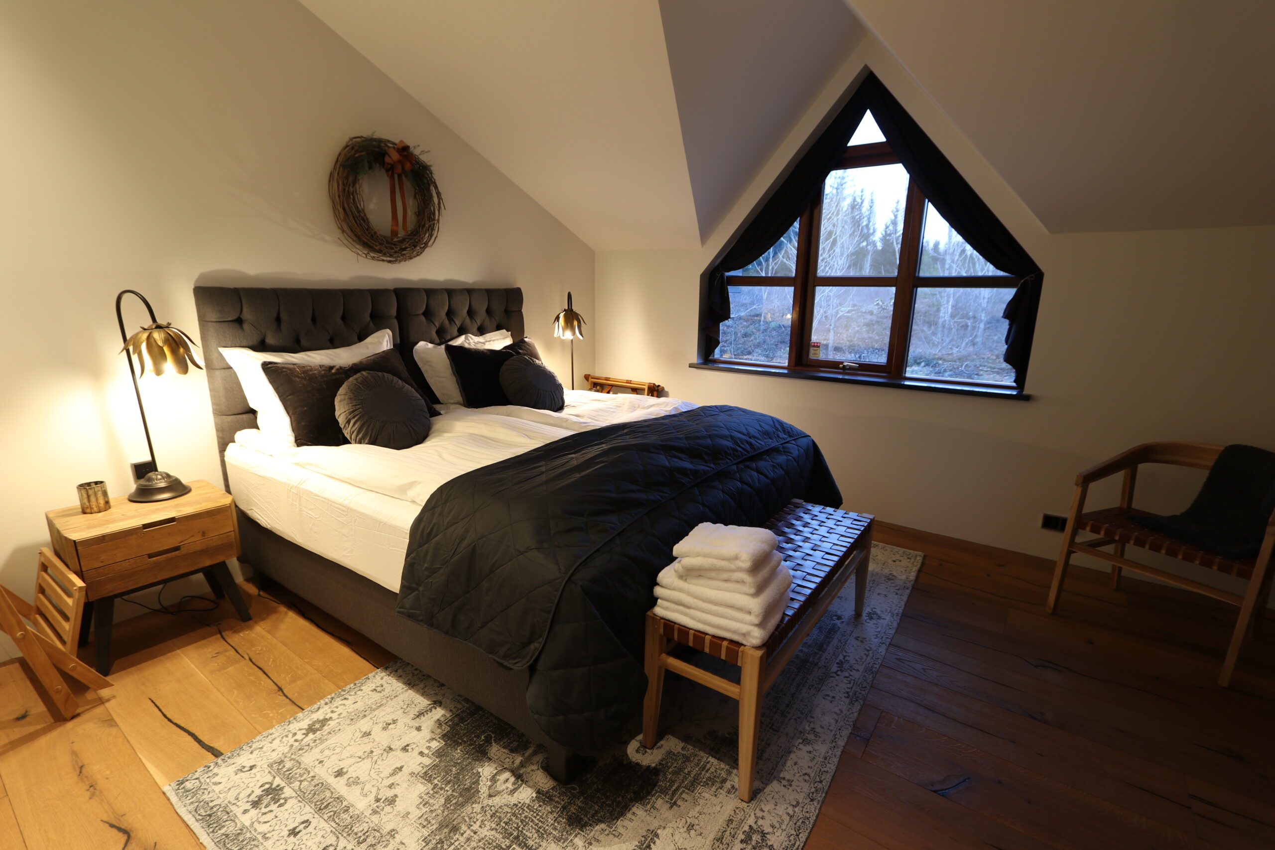 The Thingvellir Master Suite is a grand 42 sqm space with a 20 sqm balcony offering breathtaking views of the Ingólfur mountain. Enjoy a California King bed and a luxurious ensuite bathroom with a walk-in shower and a soaking tub, designed to enhance relaxation